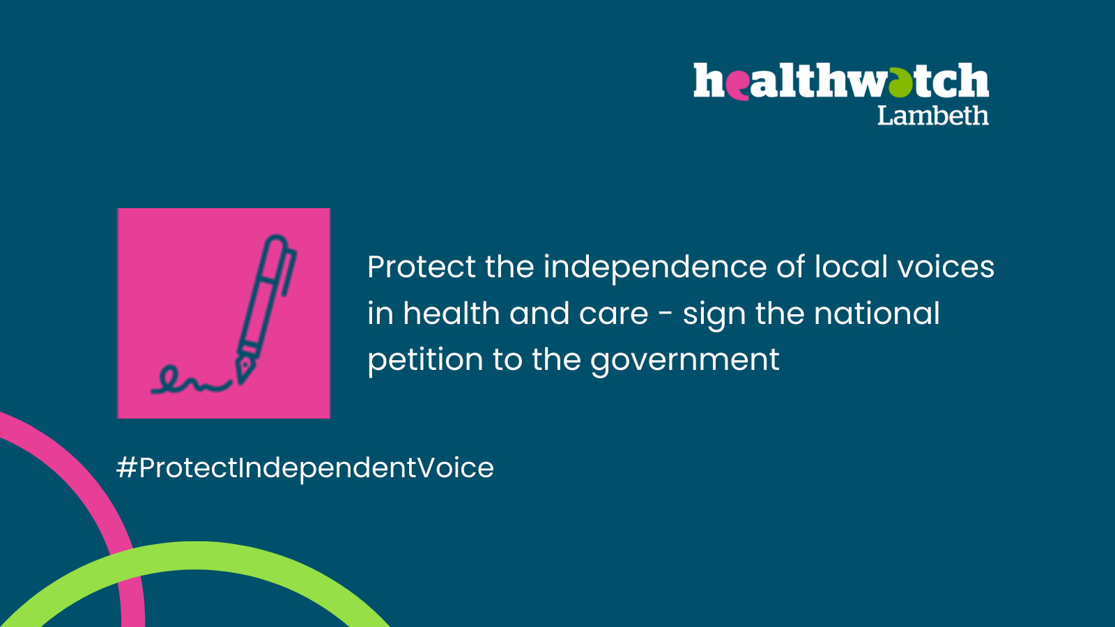 If this matters to you, please feel free to sign and share the petition with your communities. People must have a say in the future of health and care, and we believe that voice must be independent.